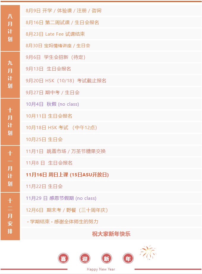 2025 秋季学期安排